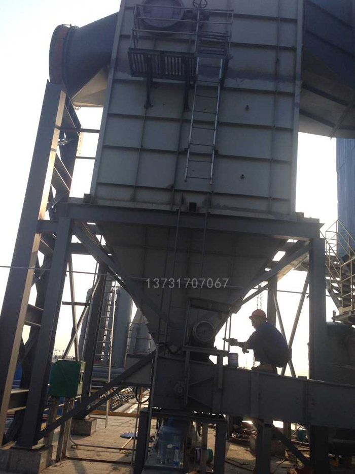 此除塵系統由電動閥、布袋除塵器、粉塵輸送裝罩(卸灰閥、刮板輸送機、儲灰倉)、主風機機組(主風機、電動機、液力偶合器)、補償器、煙氣管道、煙囪等組成。